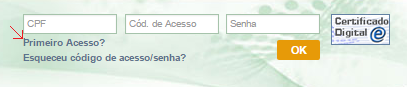 Se ainda não está cadastrado, ao acessar o Portal do eSocial o empregador doméstico deverá clicar no link “primeiro acesso?”, conforme consta da opção do lado superior direito do site, abaixo demonstrado.