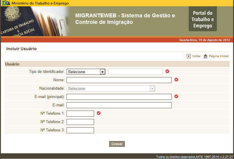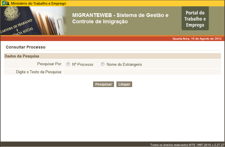 Os requerimentos de permissão de trabalho poderão ser efetuados em meio eletrônico, em sistema próprio disponibilizado na internet pelo Ministério do Trabalho e Emprego, conforme seguem os links: